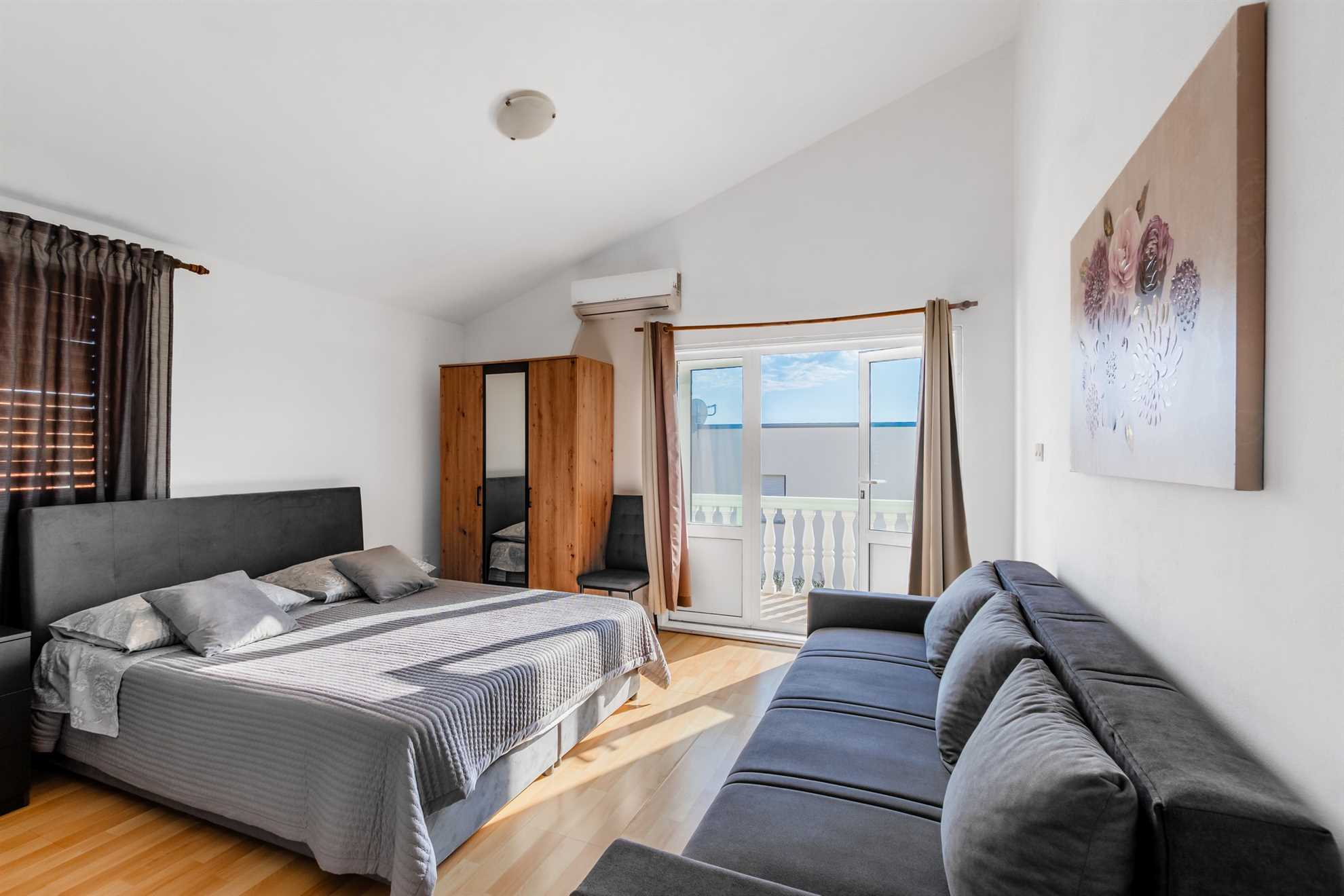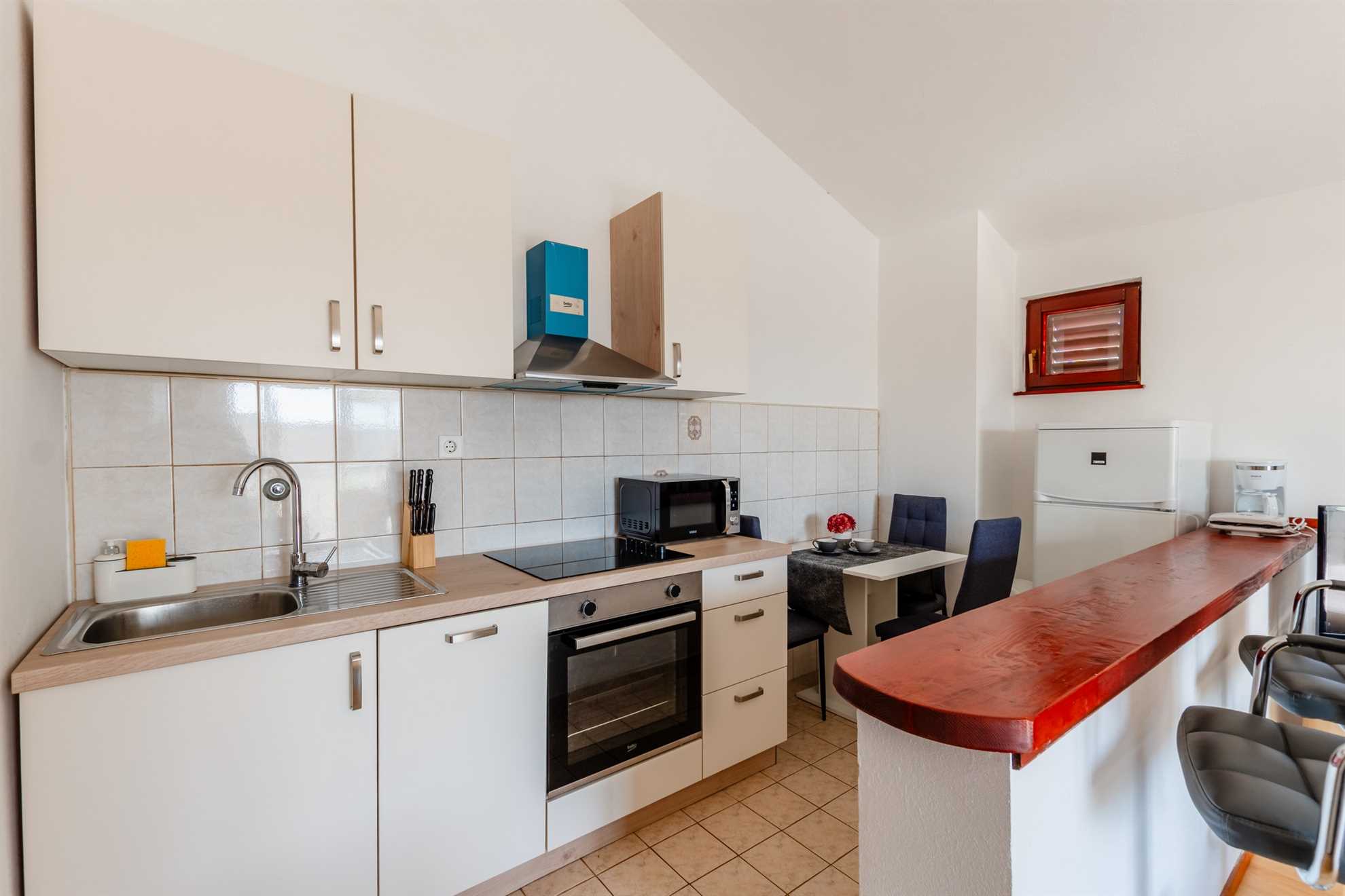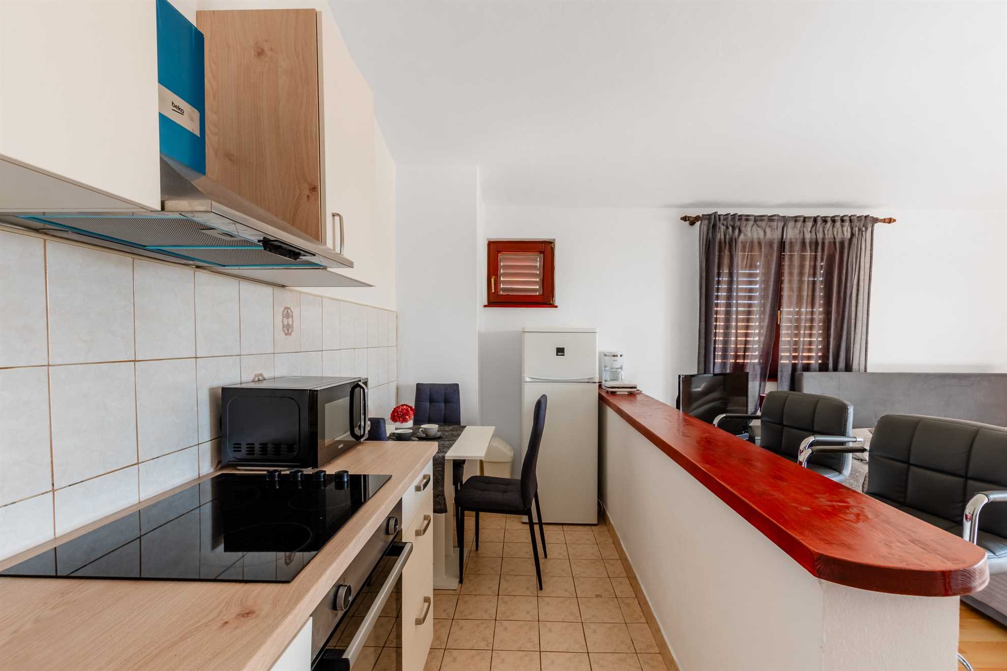 This apartment for 2 persons is located in a quiet area of Vrsi, 200m from the beach called Vrsi-Mulo. The 40 m² studio apartment is located on the second floor of the house and consists of a living room with a dining area and a kitchen, a double bed and a bathroom with a shower. The apartment also has a furnished terrace of 10 m². Air conditioning, a dishwasher, wireless internet and parking on the property are just some of the features of this apartment. Restaurants and shops are just a few minutes' walk away. The center of Vrsi is about 300m away. The municipality of Vrsi is rich in cultural heritage and natural beauty. The residents are mainly engaged in agriculture, tourism and maritime activities. One of the greatest natural resources of the municipality of Vrsi is the beautiful and indented coastline, 34 km long. The coast is dominated by natural coves and hidden beaches, while urban beaches with illuminated promenades can be found in the Vrsi-Mulo and Vrsi-Zukve areas.