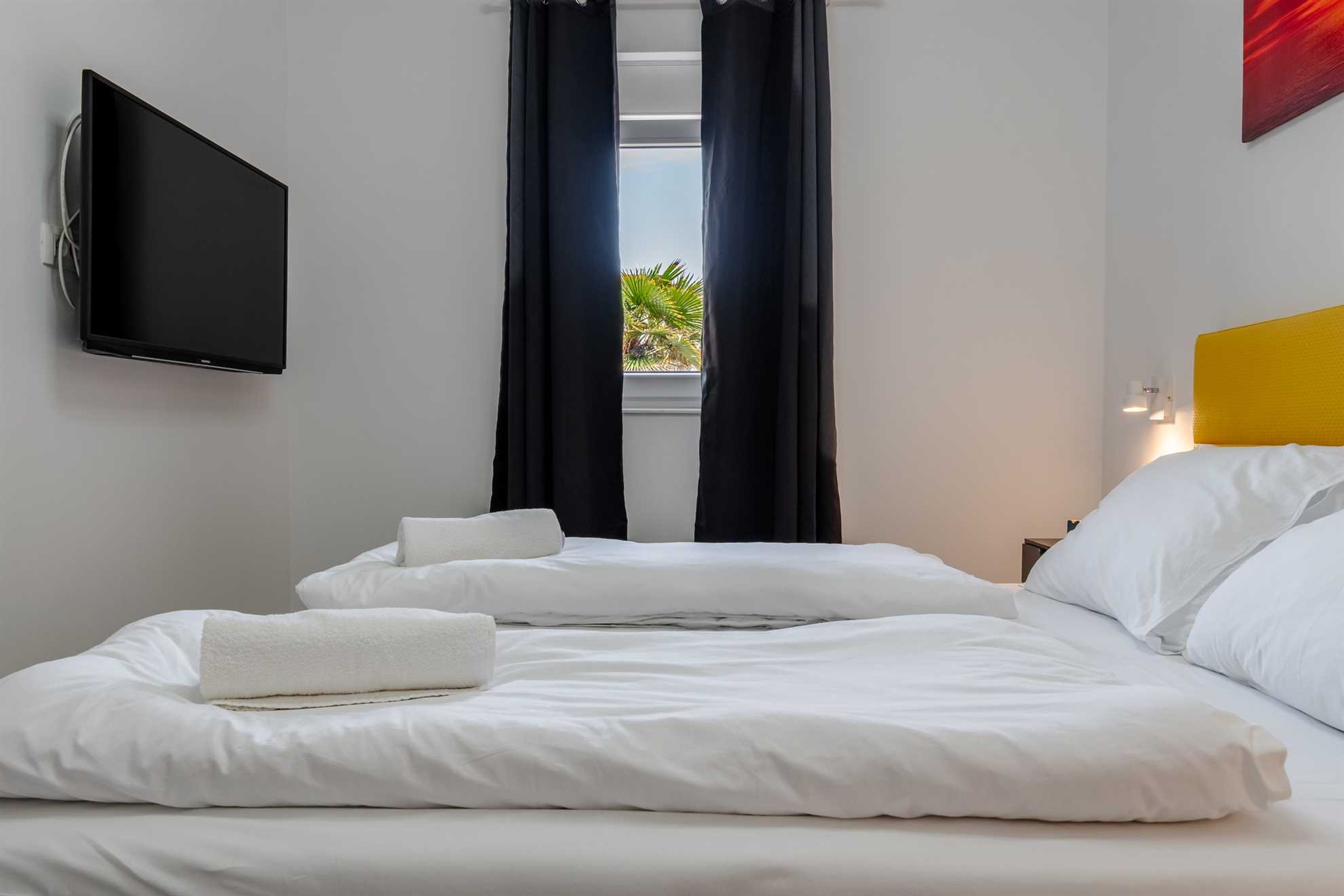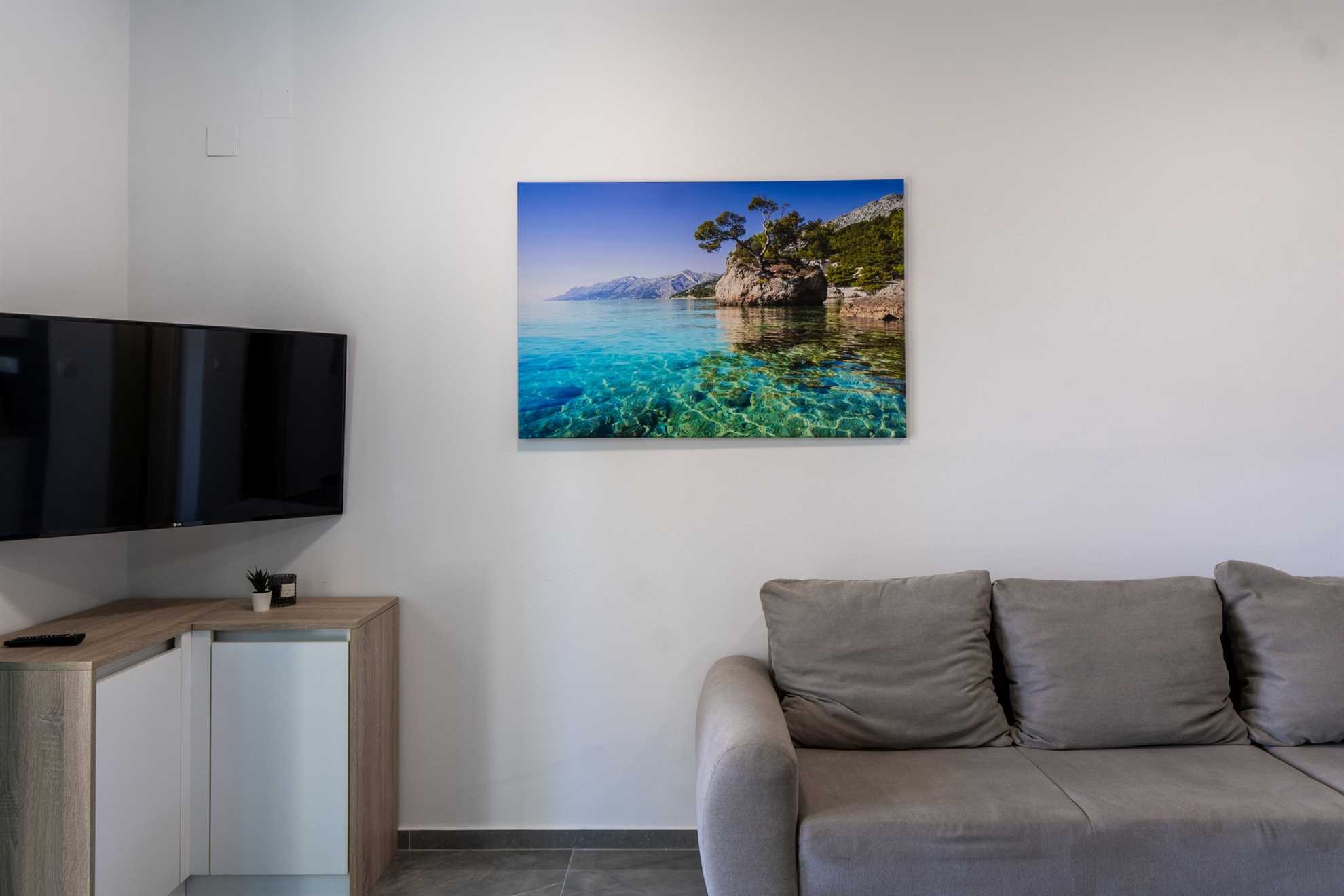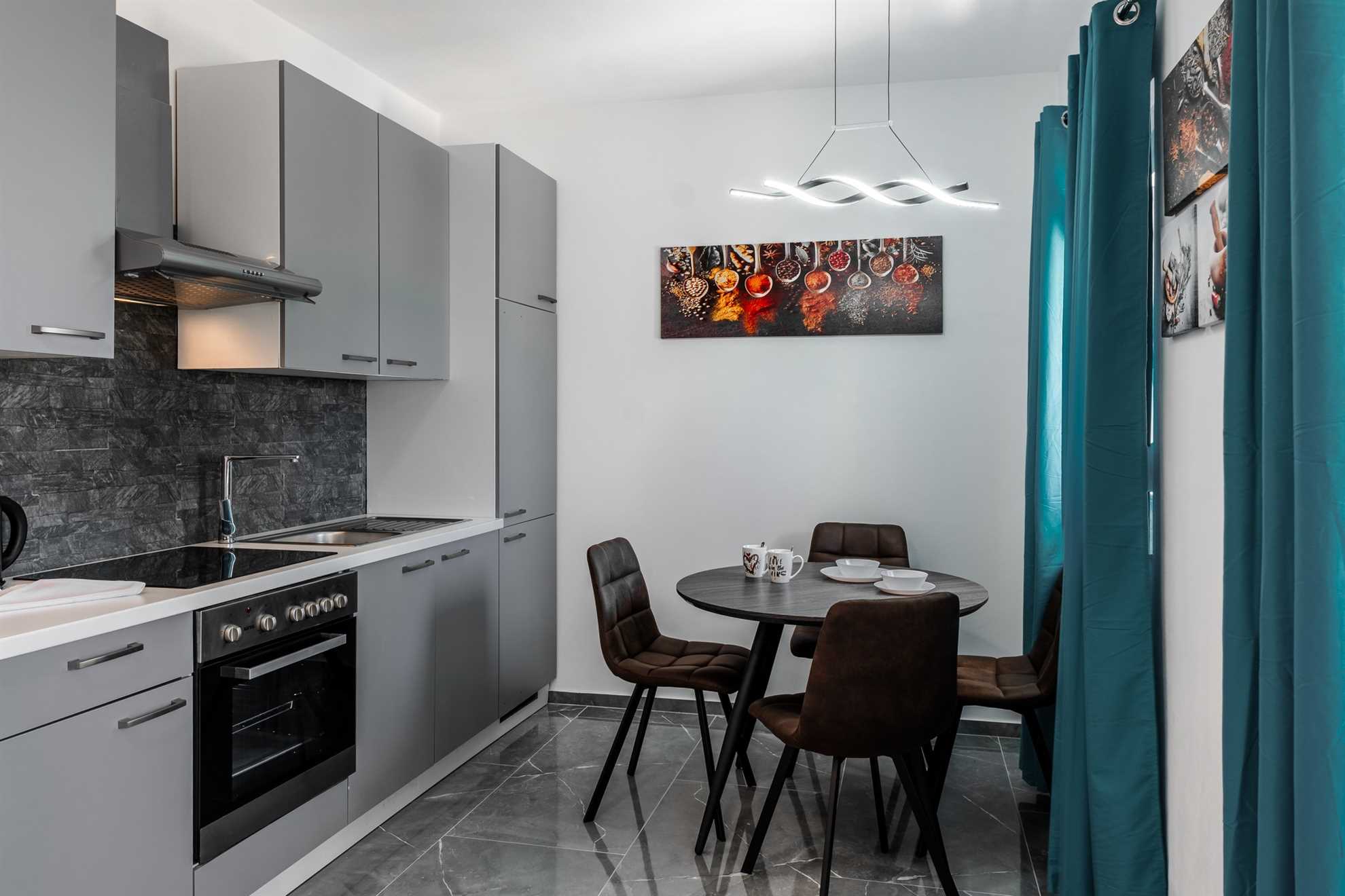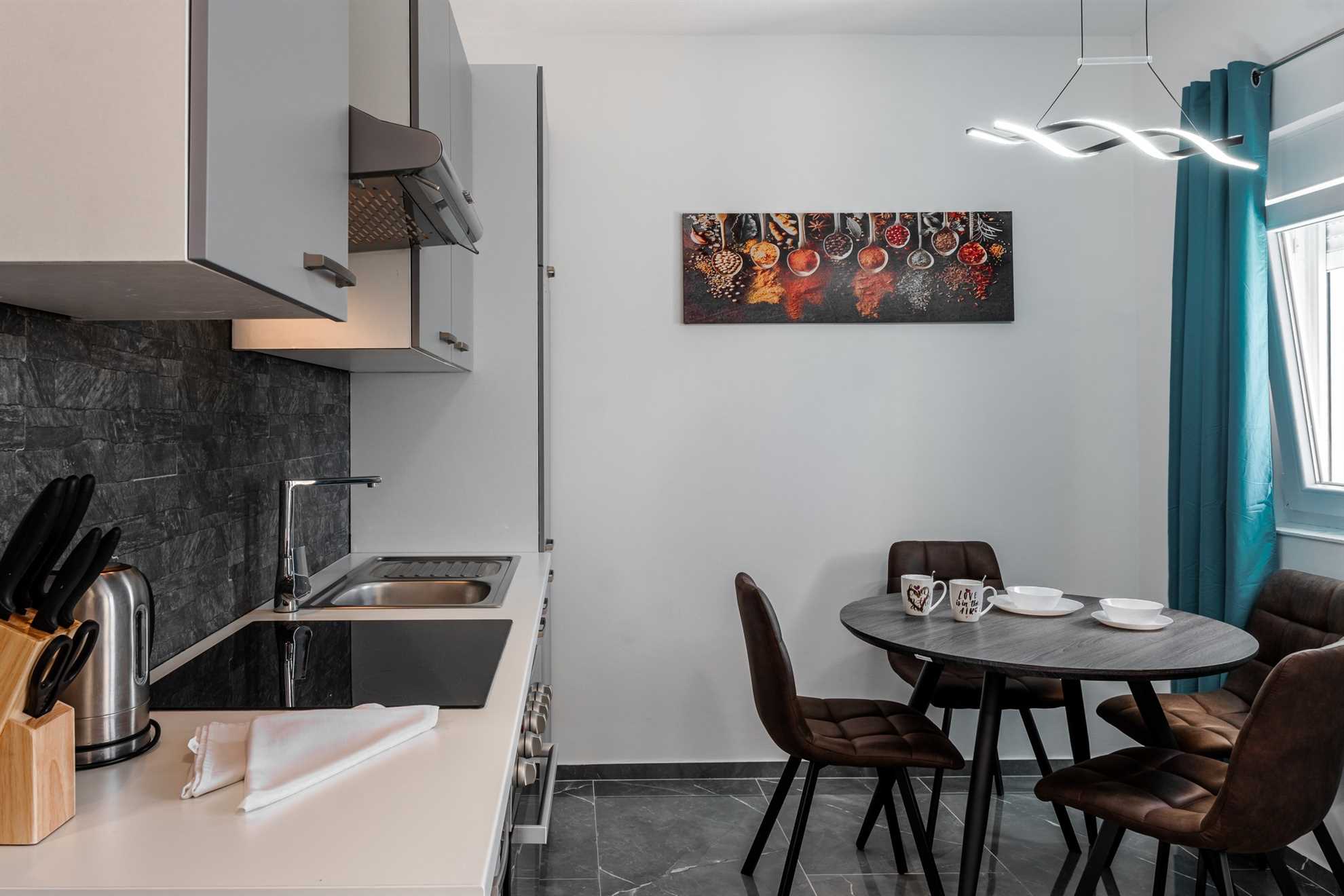 This beachfront apartment is located in the quiet area on the island Vir and offers space for 2-3 persons. The apartment is located on a spacious estate. In the courtyard of the house, for common use, there is a jacuzzi and a barbecue with an outdoor area for hanging out. The nearest beach is about 10m distanced from the house. The 45 m² apartment is located on the ground floor of the house and consists of a kitchen with dining and living area, one bedroom with double bed and a bathroom with shower. In the living room there is a sofa bed for one more person. From the living area you can reach onto a 10 m² terrace with sea view. There is a private parking lot in the yard of the house. A restaurant and supermarket can be found in just a few meters distance.